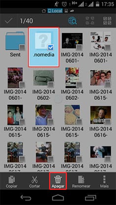 Selecione o arquivo ".nomedia" que você havia criado, clique em "Apagar" e confirme a ação.