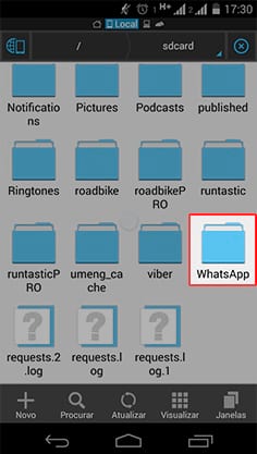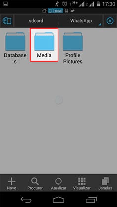 Inicie o aplicativo e procure a pasta de arquivos do Whatsapp.
