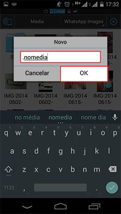 No nome do arquivo escreva ".nomedia" (sem as aspas) e clique em ok.