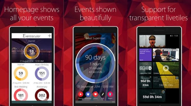 Adicione eventos no seu aparelho de forma simples e fácil. O “Enventacular” é um aplicativo que inseri um relógio na tela inicial do gadget e a partir dele você poderá criar eventos para ser lembrado, como aniversários e festas, entre outros, tudo em forma de contagem regressiva, permitindo a verificação em tempo real. Possui uma interface de cair o queixo de tão bem trabalhada. O app é gratuito, mas algumas opções precisam ser adquiridas através de compras.