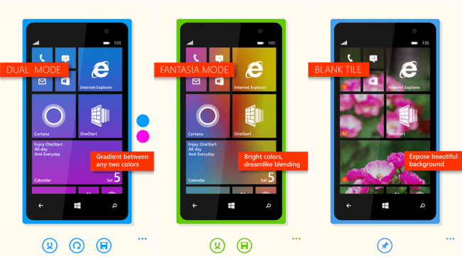 Para finalizar nossa seleção do melhores aplicativos, escolhemos um programa de personalização para utilizar no Windows Phone. O “One Start” pode ser encontrado gratuitamente na Windows Store e possui uma suíte de ferramentas que lhe permite criar papeis de paredes customizados em uma ótima resolução. Também é possível deixar as tiles do sistema transparente permitindo uma maior visualização dos wallpapers.